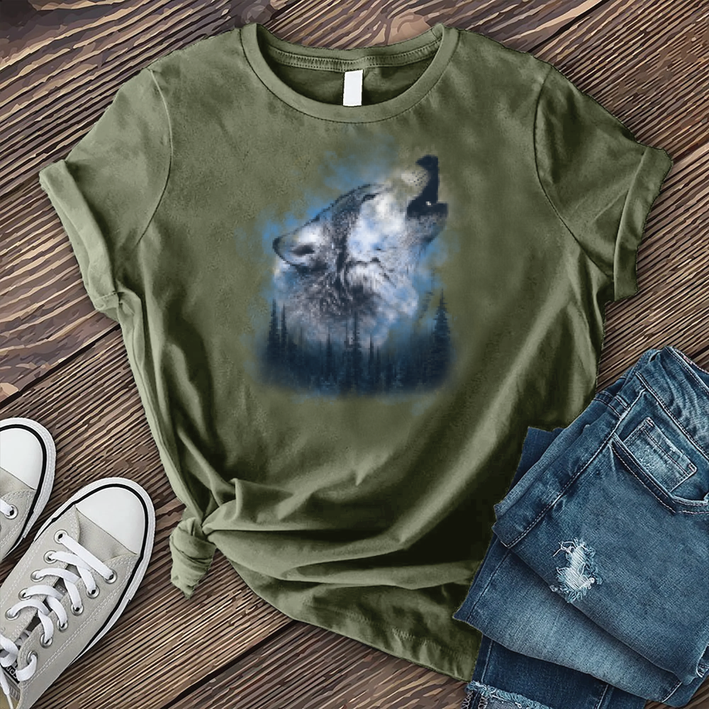 3. Blue Howling Wolf T-Shirt