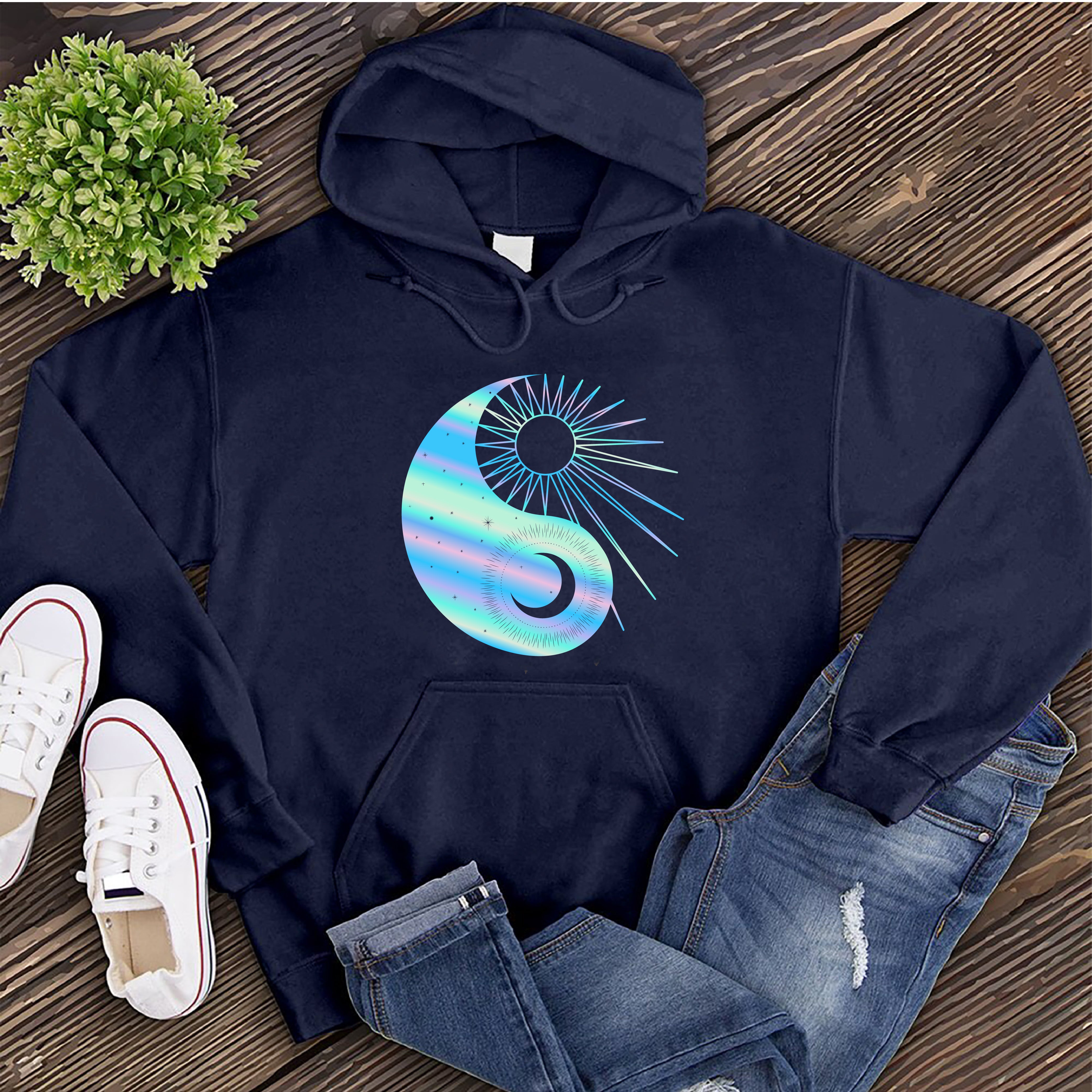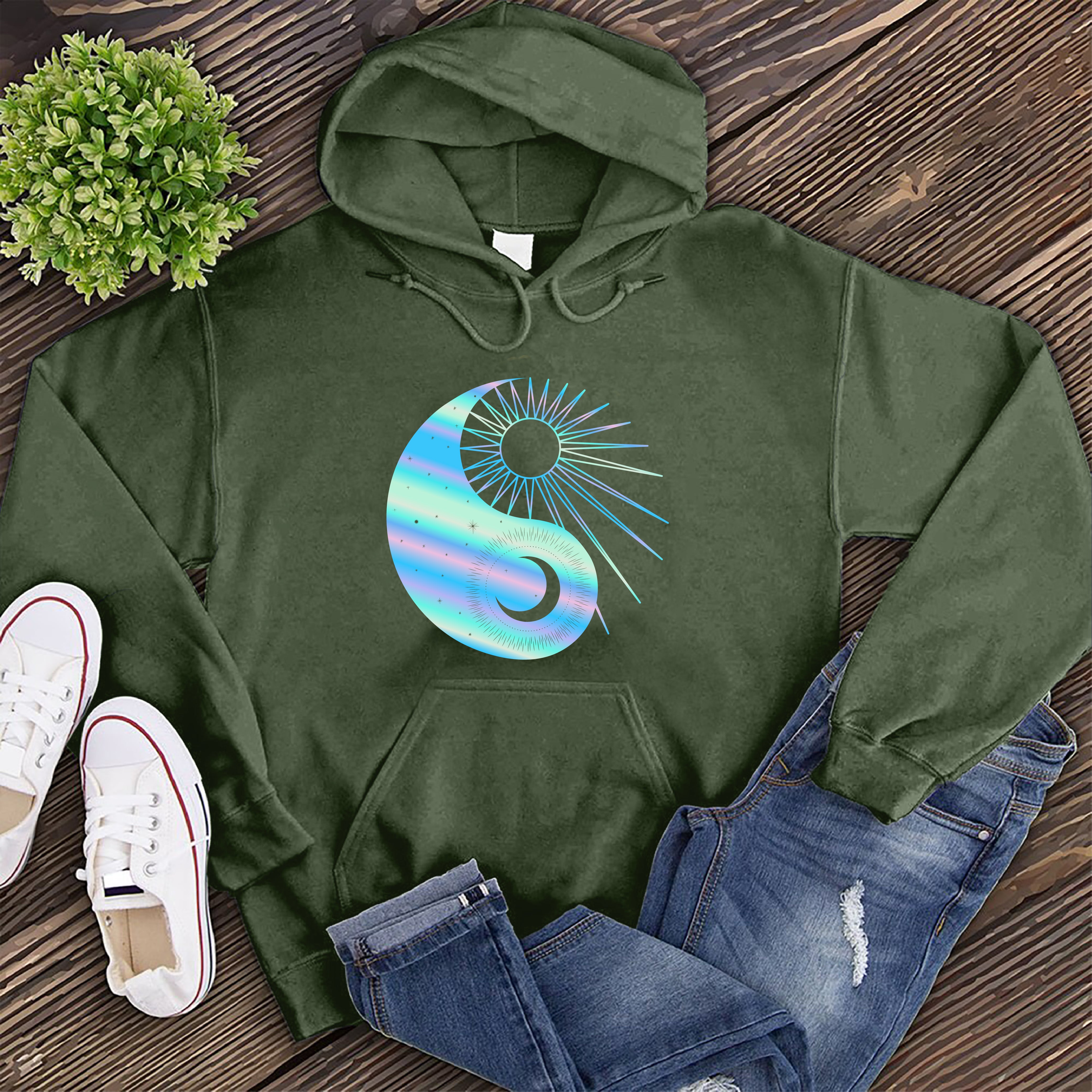 Rainbow Sun and Moon Yin Yang Hoodie Image