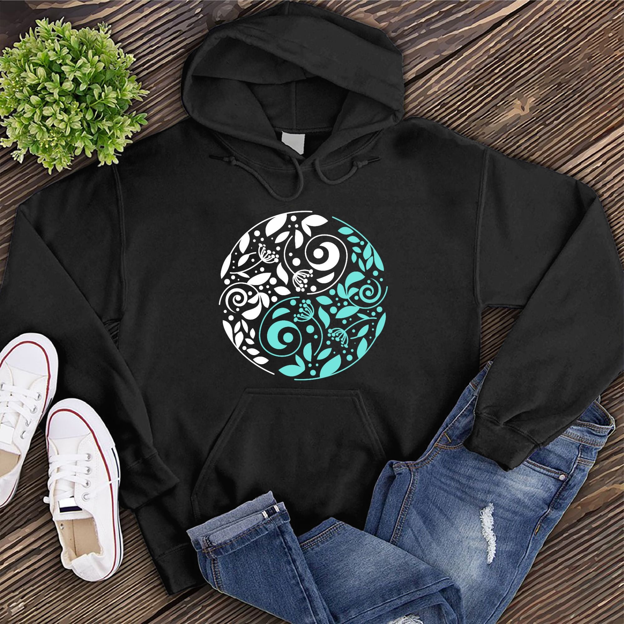 Teal Nature Ying Yang Hoodie